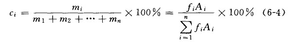 Wi%=mi/(m1+m2+m3+…+mi+…)*100%==Ai/(A1+A2+A3+…+Ai+…)*100%=Ci%
