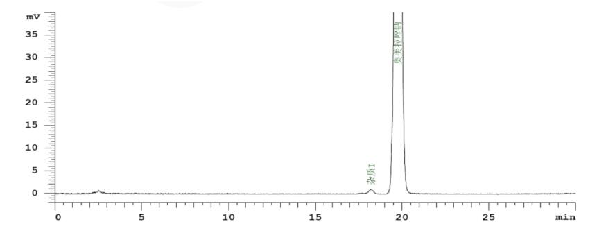 以下方法摘自揚子江藥業(yè)集團有限公司發(fā)明專利CN 112666304 A. 色譜柱:Chiral MZ(2)-RH 5u(貨號:FMG-AC5-B02-R) 流動相:20mM NH4CO3溶液-乙腈-甲醇=50:30:20 體積比 流速0.8ml/min 波長:302nm ; 進樣量 20ul