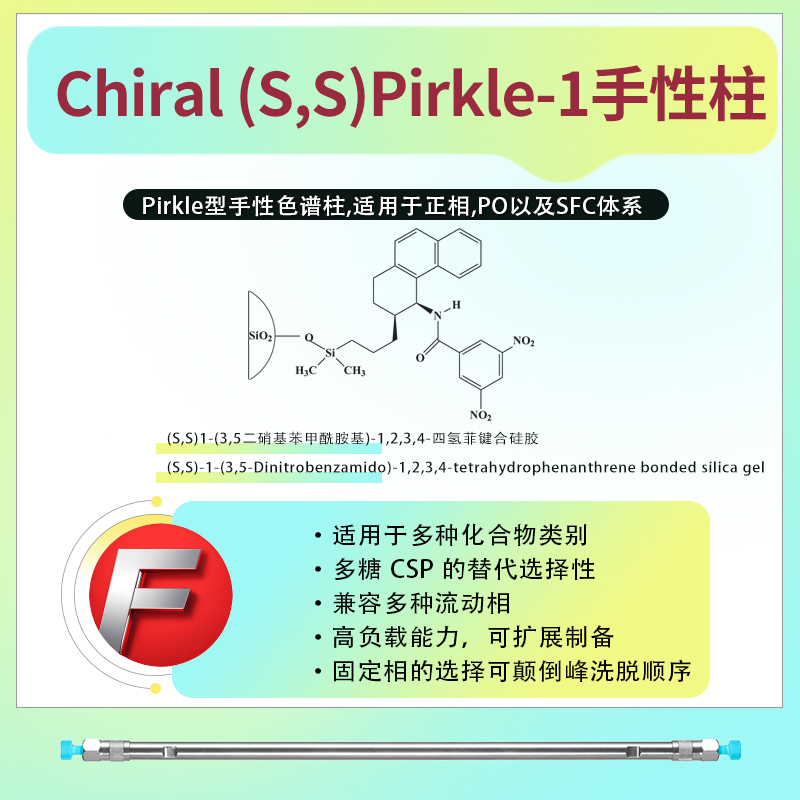 • Chiral (S,S)Pirkle-1 手性柱 Chiral (S,S)Pirkle-1 手性柱是一種具有手性識別特性的固相填充柱,主要用于對立體異構體具有分離作用