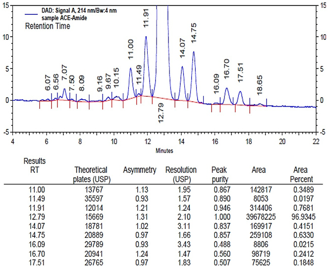 色譜柱:ACE Excel C18-Amide 3μm 100×4.6mm(貨號(hào):EXL-1112-1046U)