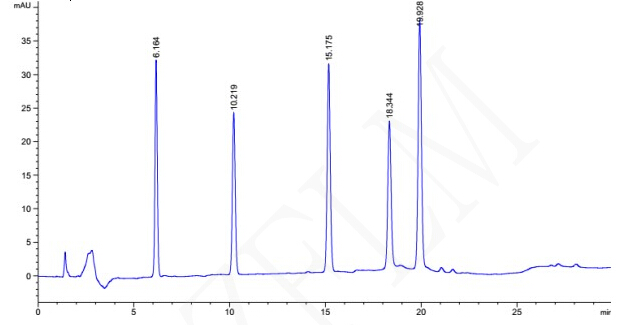 色譜柱:Titank F5 5μm 250×4.6mm(貨號(hào):FMG-5565-EONU) 檢測(cè)波長:227 nm